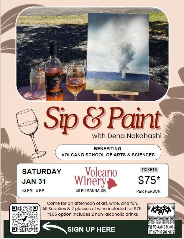 Join us for a special afternoon of painting, creativity, and connection with talented local artist Dena Nakahashi. Inspired by our ever-changing volcanic landscape, this guided painting experience will take place at Volcano Winery and promises a fun, memorable time for all skill levels.