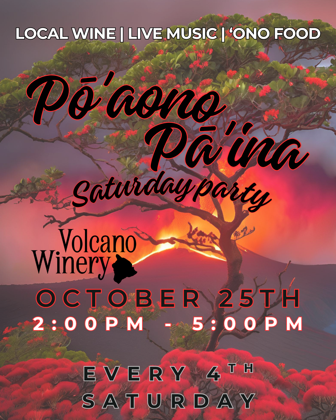 We are excited to announce our monthly Pā'ina for all to enjoy! We will be offering wine club members a exclusive taste of the wine maker's choice pick of the season during these events. If you are interested in joining our club 'ohana you can sign up anytime! Subscribe to receive 3 bottles quarterly! No sign up fee and cancelation fees. Minimum of two 3 bottle installments are required. See Club Volcano for more information or contact any member of our hui (team).